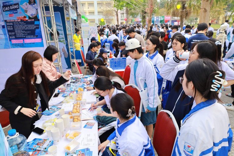 Tại đây, các bạn học sinh cuối cấp được nghe phổ biến các thông tin tuyển sinh 2026 chi tiết, chính xác. Tư vấn ngành học gắn với nhu cầu doanh nghiệp, cơ hội việc làm rộng mở. Nhà trường cũng giới thiệu đến các bạn môi trường học tập thực hành, ứng dụng, liên kết doanh nghiệp. Giải đáp trực tiếp các thắc mắc về chính sách học phí, học bổng, cơ hội liên thông, du học, việc làm sau tốt nghiệp.