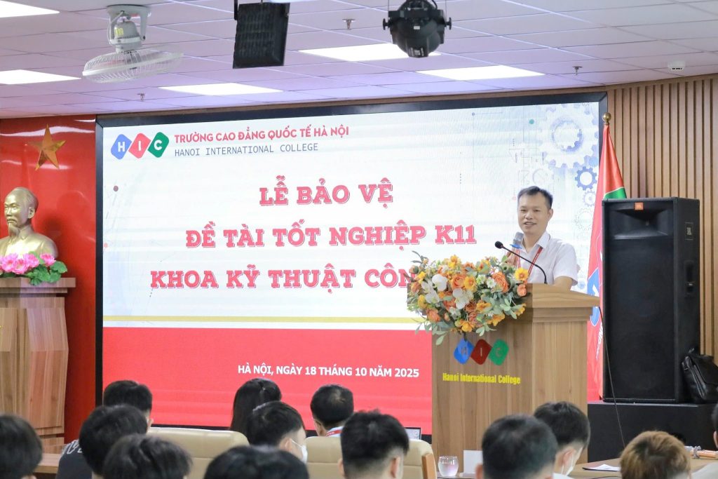 Vừa qua, Trường Cao đẳng Quốc tế Hà Nội đã long trọng tổ chức Lễ bảo vệ Đề tài tốt nghiệp dành cho sinh viên khóa 11 của khối ngành Công nghệ – Kỹ thuật. Đây là một sự kiện quan trọng đánh dấu bước ngoặt trong chặng đường học tập và trưởng thành của các bạn sinh viên.